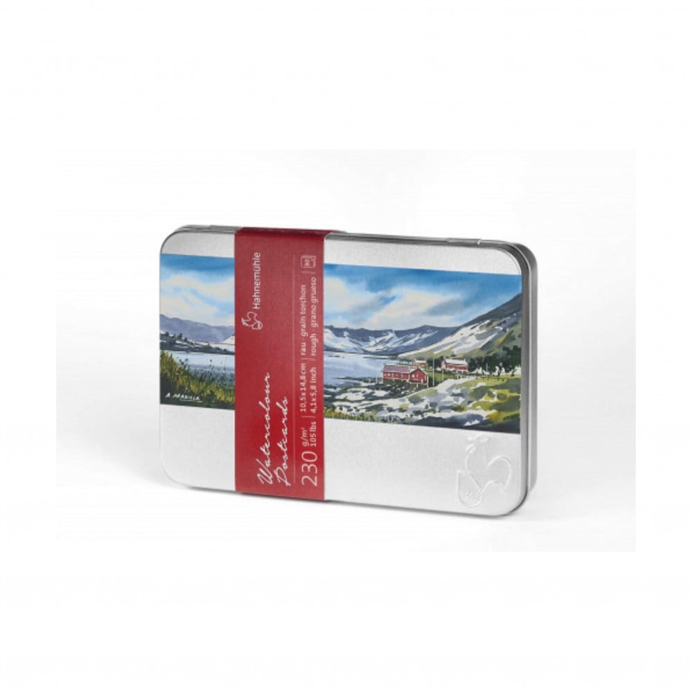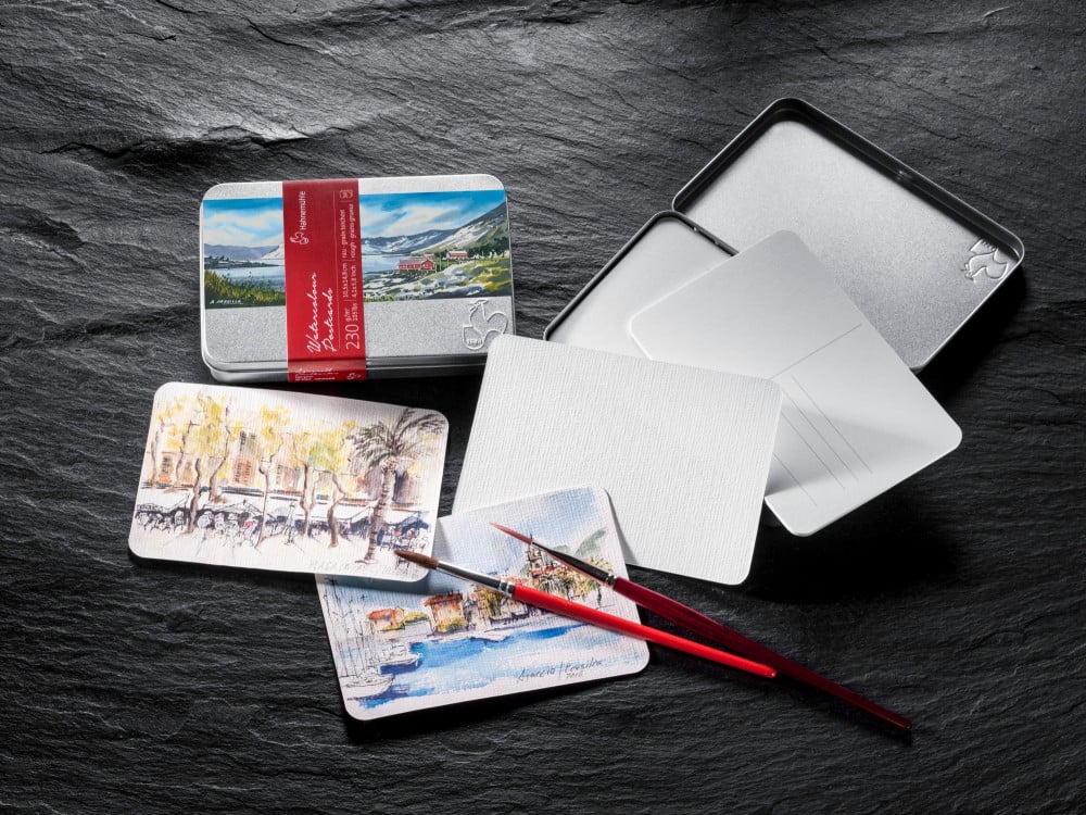 ورق مائي أبيض محفوظ في علبة معدنية أنيقة .